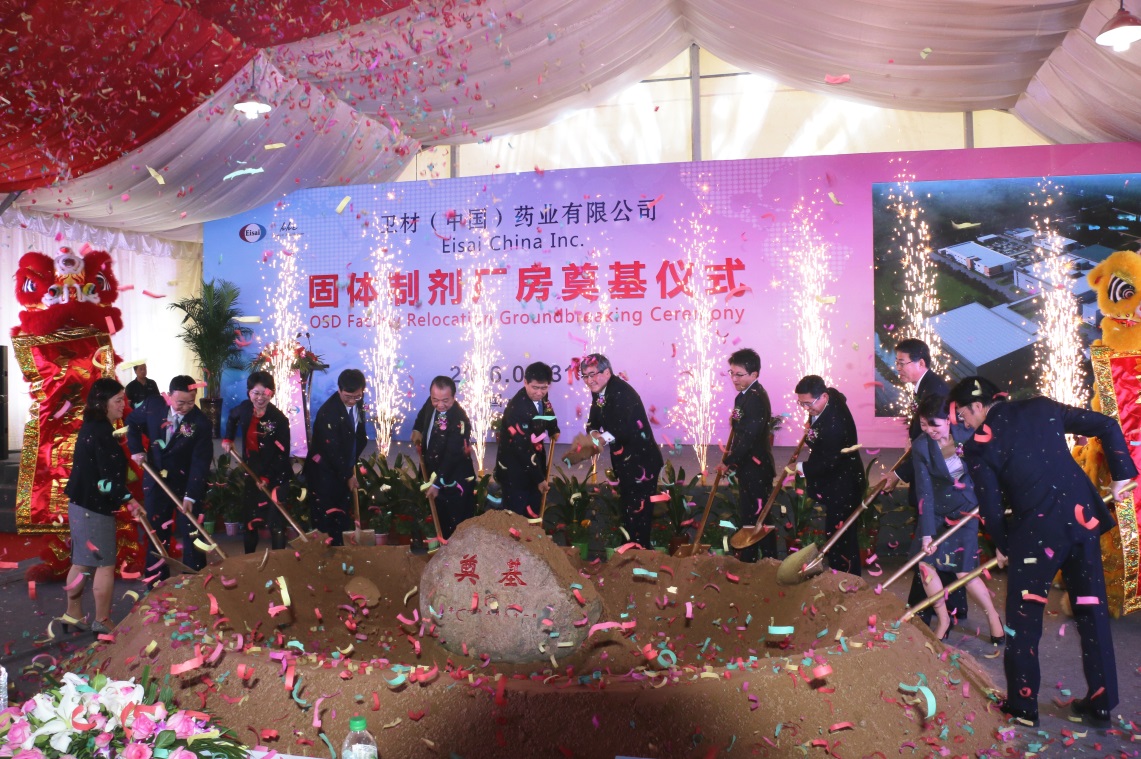 2016年5月31日上午,卫材(中国)药业有限公司(以下简称:卫材(中国))新固体制剂厂房奠基仪式在苏州工业园区举行。日本驻上海总领馆、江苏省食品药品监督管理局、苏州市政府、苏州工业园区管委会、苏州市食品药品监督管理局、卫材株式会社、卫材中国区领导等出席奠基仪式。